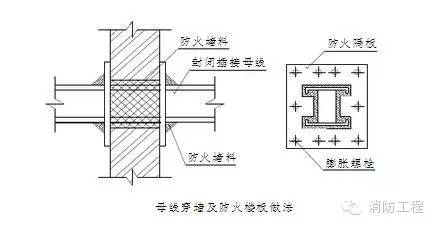 7.封閉插接母線在穿過墻及防火樓板時,在母線周圍填充防火堵料,具體做法見上圖。