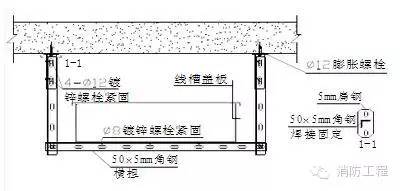 3.線槽橋架在跨越防火分區及線槽穿樓板的部位做防火封堵處理。封堵板用2mm厚防火板,具體做法如圖所示: