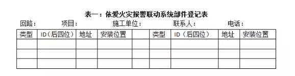 有編碼器時(shí),在安裝部件時(shí),先對(duì)部件進(jìn)行地址編號(hào),然后填寫(xiě)在部件登記表中如表一。(同時(shí)把部件ID號(hào)的后四位記錄在表一的對(duì)應(yīng)位置,這樣做的好處是:通過(guò)主機(jī)可以調(diào)整部件編號(hào),不必再到現(xiàn)場(chǎng)去編號(hào))