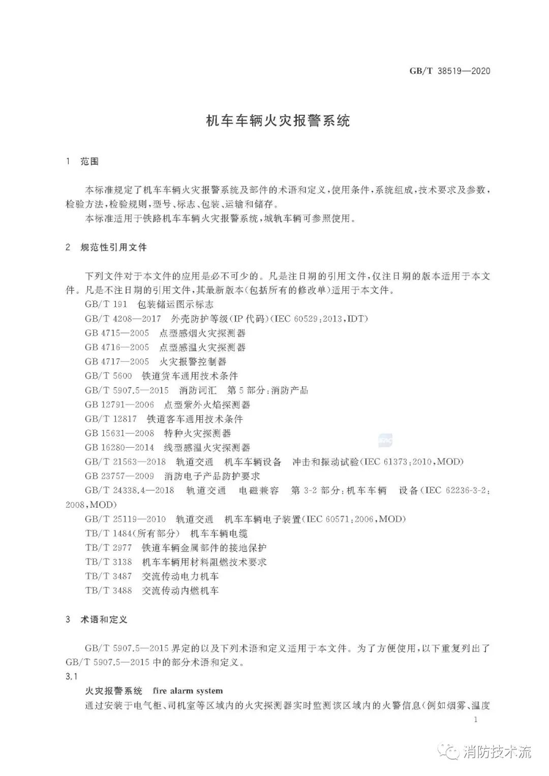 新標準發布:《機車車輛火災報警系統》全文