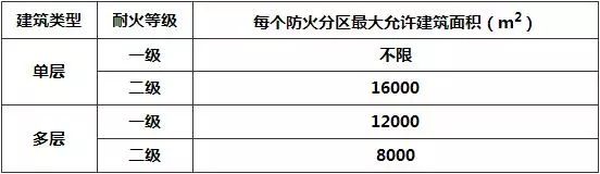 注:當建筑設自動滅火系統時,最大允許防火分區面積可以按本表增加1.0倍。