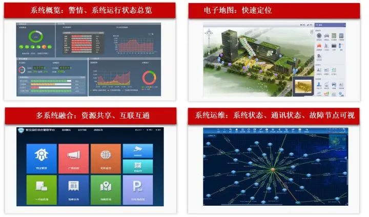 • 全景視頻監控系統門禁管理系統智能一卡通系統智能一臉通系統入侵報警系統停車場管理系統公共廣播及應急指揮系統