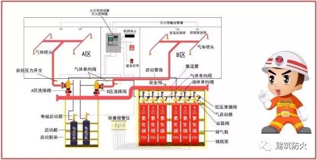 又如對于氣體滅火系統,采用氣體滅火的部位,一般來說是建筑中比較關鍵和重要的部門。 為了有效撲滅不適合用水撲滅的火災,而采用氣體滅火。對此空間而言, 應該是和其它房間完全隔開,形成一個封閉的空間, 一旦氣體噴出,只限定在此空間內。 因此需要向建筑師提清楚要求,讓建筑專業將防火的隔墻砌到頂。另外為這種房間服務的送風和空調管道,在進入該房間時應有防火閥,以便在噴氣前將其自動關閉,不使風道成為泄壓的通道。 這就需要與通風空調專業的人員密切配合。此種情況最容易發生在已建成的建筑中,原來僅按一般辦公室設計,在一個防火分區內,其吊頂上方常未封死,當某個租戶或業主進樓后,提出要將某個房間改成重要的房間而需要采用氣體滅火系統時,往往會忽略這方面的要求而使其滅火系統達不到預期的效果。