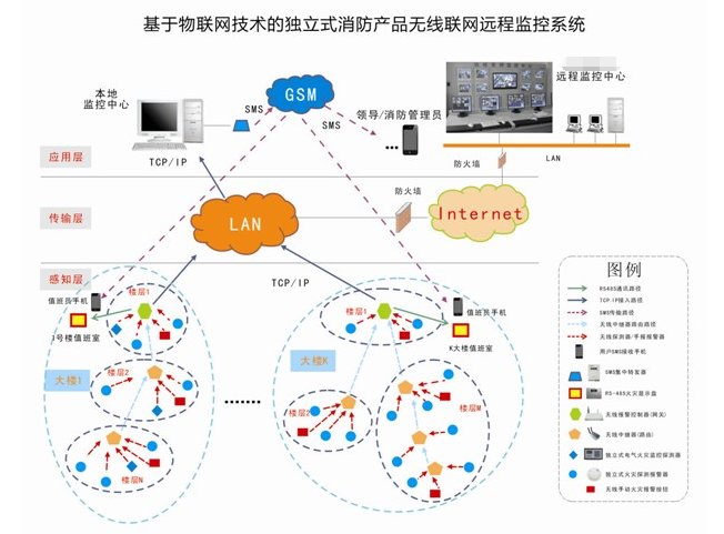 海灣作為有著近30年研發、制造火災報警產品的專業廠家,憑借在消防報警行業和火災報警傳輸領域多年的技術積累,推出一套針對特定場所采用無線覆蓋方式,將獨立式火災探測報警器進行聯網,組成無線報警系統,通過無線信息傳輸,可將無線系統進入計算機圖形顯示裝置和消防遠程監控系統。根據特定的要求,該系統可應用于家庭、商業門店、小型作坊、網吧、出租屋、古建筑群、養老院、福利院、幼兒園、托兒所、學校宿舍、娛樂場所等不適合或不方便安裝有線報警系統的場所。