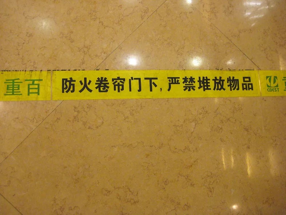 設置要求:在防火卷簾正下方應劃定黃色標識線,并標明防火卷簾下方嚴禁占用提示語。