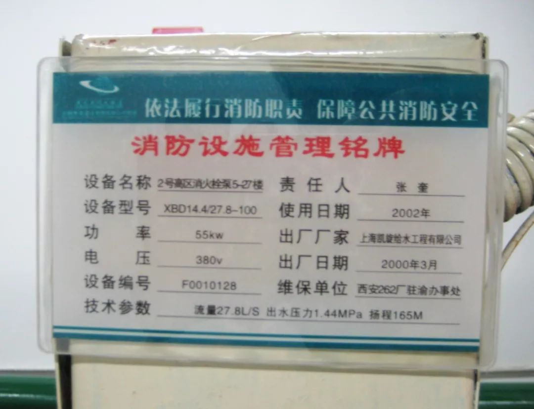 設置要求:主要消防設施應設置管理銘牌標牌。