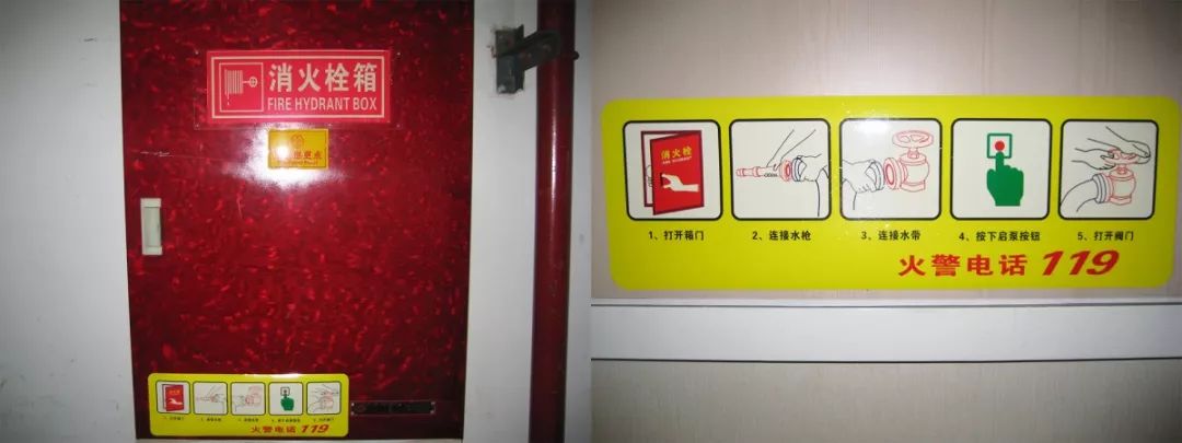 設置要求:在消火栓箱門中上部應設置自發光式“消火栓箱”標牌,在中下部張貼操作方法圖例,圖例大小420×140mm。