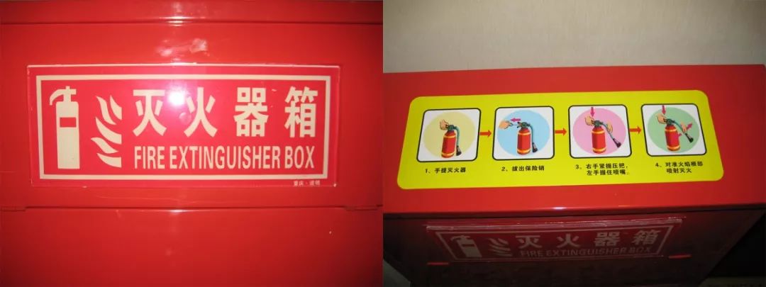 設置要求:在滅火器箱體正面中上部應設置自發光式“滅火器箱”標牌,在箱體上方張貼操作方法圖例,圖例大小420×140mm。