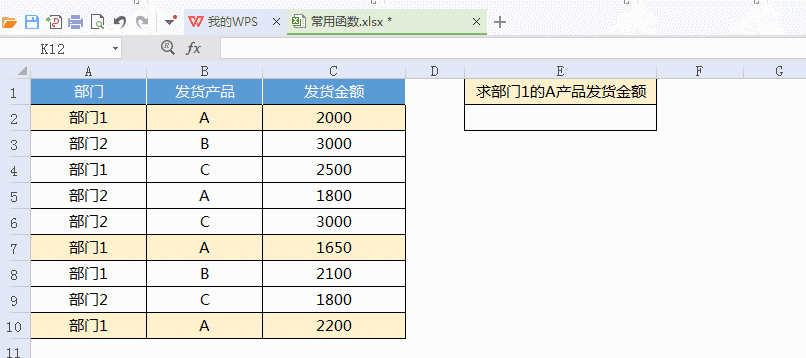 ▲舉例:求某部門某產品發貨總金額(只要將上面的公式后面乘以求和列就可以)。