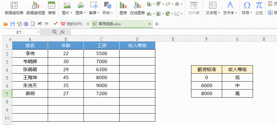 ▲模糊查找:將員工收入劃分等級,工資低于6000屬低收入,6000-8000中等收入,8000以上高收入。