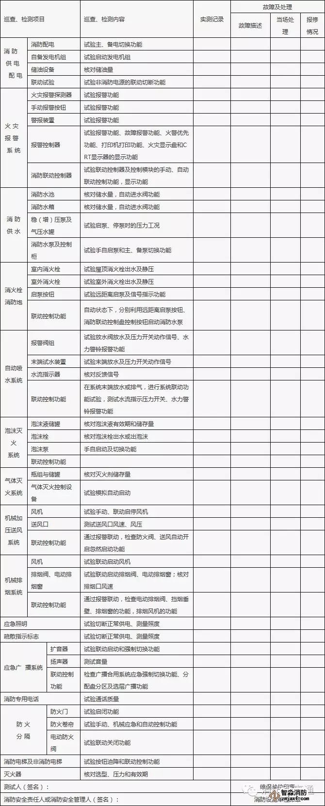 建筑消防設施巡查、維護保養、測試記錄表