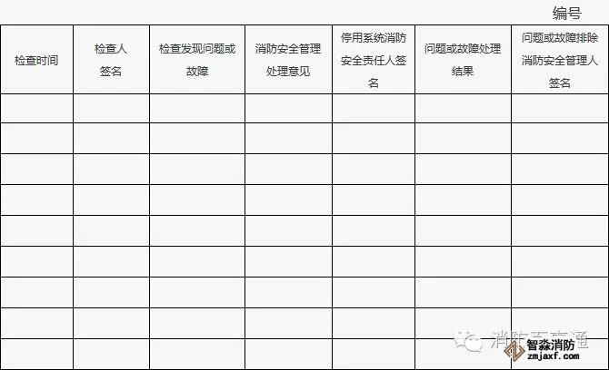 4、附表中各項目情況正常打“√”,存在問題或故障的打“×”;對發現的問題應及時處理,當場不能處置的要填報《建筑消防設施故障處理記錄》。
