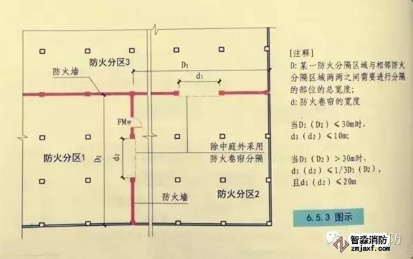 1.除中庭外,當防火分隔部位的寬度不大于30m時,防火卷簾的寬度不應大于10m;當防火分隔部位的寬度大于30ml時,防火卷簾的寬度不應大于該部位寬度的1/3,且不應大于20m。【圖示】