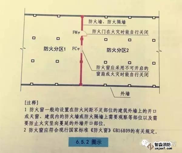 防火墻應符合現行國家標準《防火窗》GB16809的有關規定【圖示】