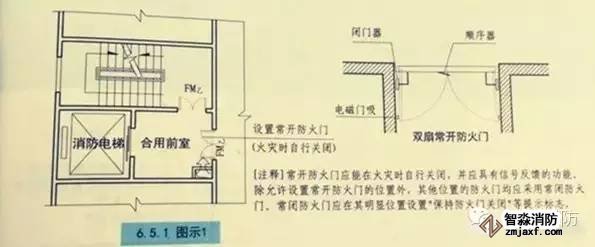 1.設置在建筑內經常有人通行處的防火門宜采用常開防火門。常開防火門應能在火災時自行關閉,并應具有信號反饋的功能?!緢D示1