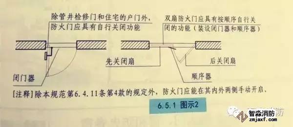 3.除管井檢修門和住宅的戶門外,防火門應具有自行關閉功能。雙扇防火門應具有按順序自行關閉的功能?!緢D示2