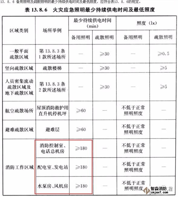依據(jù)《民規(guī)》我們也可以明確,消防控制室、重要控制室等一些特別重要崗位的備用照明連續(xù)供電時間統(tǒng)一為3h。