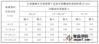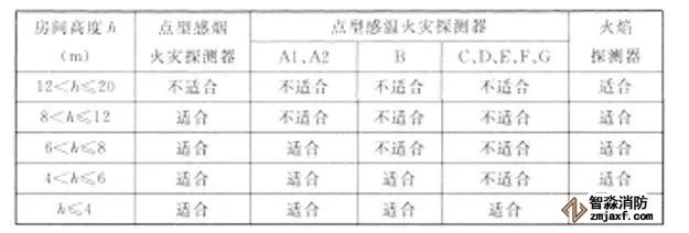 注:建筑高度不超過14m的封閉探測(cè)空間,且火災(zāi)初期會(huì)產(chǎn)生大量的煙時(shí),可設(shè)置點(diǎn)型感煙火災(zāi)探測(cè)器。