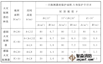 表2 感煙火災(zāi)探測(cè)器和A1、A2、B型感溫火災(zāi)探測(cè)器的保護(hù)面積和保護(hù)半徑