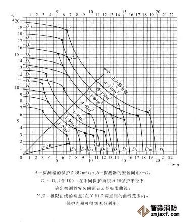 (3)感煙火災(zāi)探測(cè)器、感溫火災(zāi)探測(cè)器的安裝間距,應(yīng)根據(jù)探測(cè)器的保護(hù)面積A和保護(hù)半徑R確定,并不應(yīng)超過附錄三探測(cè)器安裝間距的極限曲線所規(guī)定的范