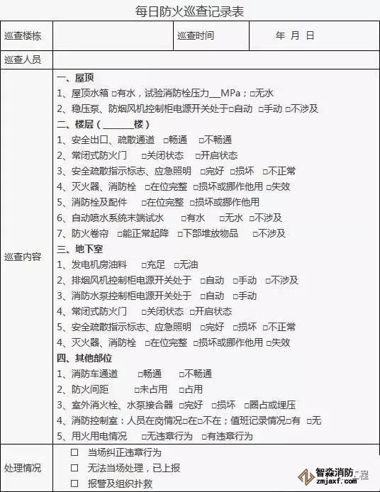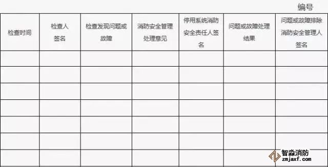 3、對發(fā)現(xiàn)的問題應及時處理,當場不能處置的要填報《建筑消防設施故障處理記錄》。