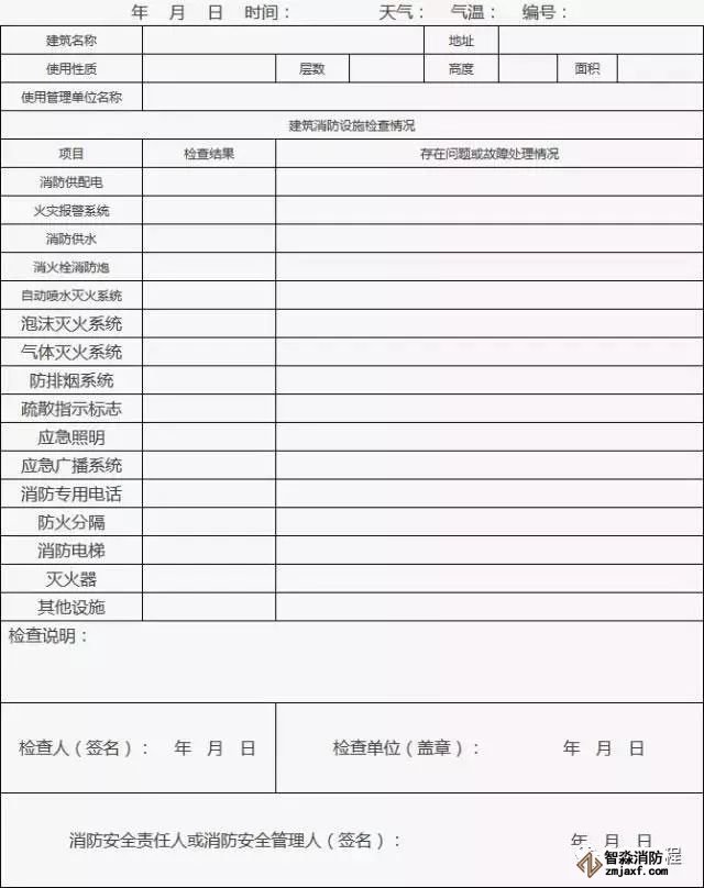 2、檢查發(fā)現(xiàn)建筑消防設施存在問題和故障的,實施檢查的人員必須向單位消防安全管理人報告,并填表。