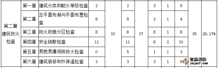 由此可看出,在消防綜合能力第二篇預習中,所占分值較高的是第四章安全疏散檢查和第三章防火防煙分區檢查,需要重點掌握。