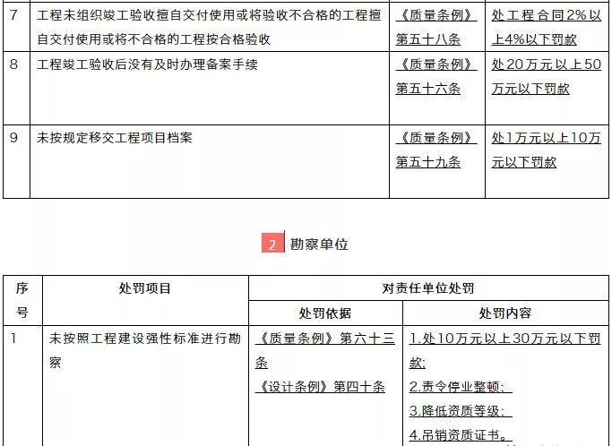 處罰依據:《建設工程質量管理條例》、《建設工程勘察設計管理條例》,細則內容摘錄自住建部文件附件。小編予以摘錄,供大家參考。