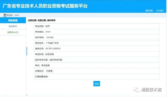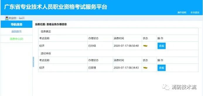 點(diǎn)擊【消息中心】鏈接,左側(cè)分業(yè)務(wù)系統(tǒng)顯示考生所有消息列表,已查看、未查看的消息分別顯示。