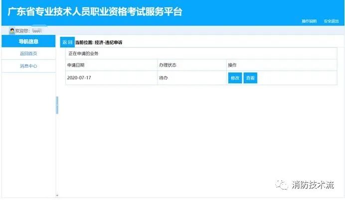 3.消息查看。申請(qǐng)的業(yè)務(wù)有新的反饋動(dòng)態(tài)時(shí),例如申請(qǐng)已受理、申請(qǐng)已辦結(jié)、申請(qǐng)需要修改補(bǔ)充材料等,左側(cè)【導(dǎo)航信息】菜單中的【消息中心】中會(huì)有閃動(dòng)提示,并且顯示新信息條數(shù),例如【消息中心(1)】。