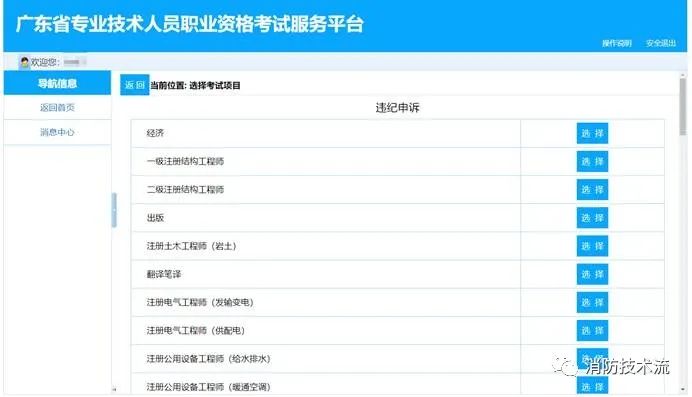 2.選擇需辦理業(yè)務(wù)的考試項(xiàng)目,點(diǎn)擊【選擇】按鈕進(jìn)入。