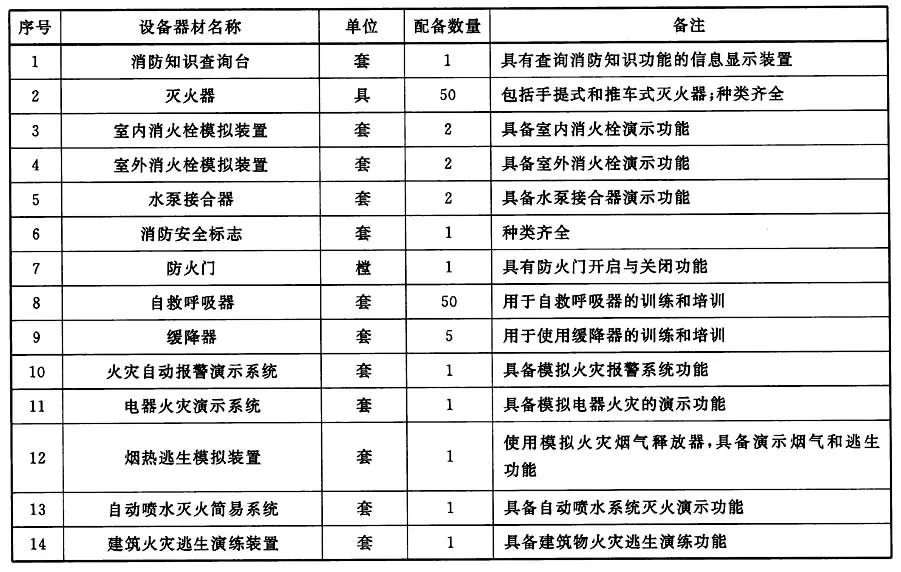 (2)承擔建(構)筑物消防員職業資格培訓的第一類社會消防安全培訓機構,教學專用設施、設備、裝備器材配備應滿足《國家職業標準·建(構)筑物消防員》要求,并有充足的實習操作工位。