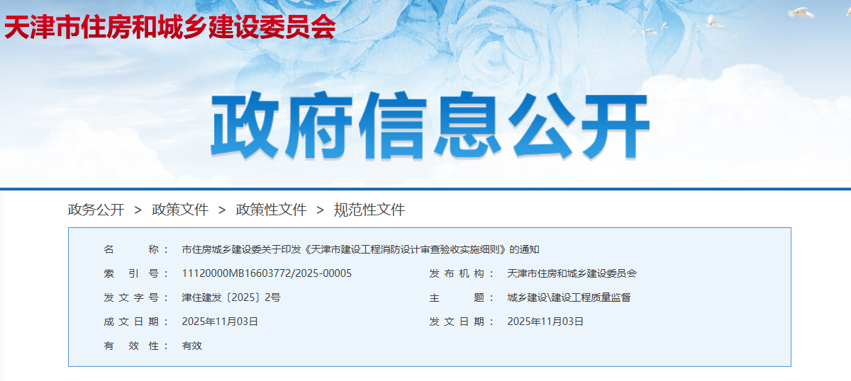本頁關(guān)鍵詞:《天津市建設(shè)工程消防設(shè)計(jì)審查驗(yàn)收實(shí)施細(xì)則》發(fā)布:明確分期驗(yàn)收、告知承諾制