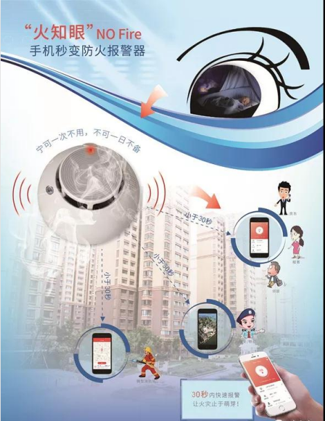 “火知眼”實現24小時在線,實時監測設備運行狀況,可以隨時隨地通過手機實時監測設備的運行狀態,一旦探測到火情時,不僅現場有高分貝報警,還可以通過電話語音、短信、手機APP等方式第一時間通知業主、物業、微型消防站及時處理。