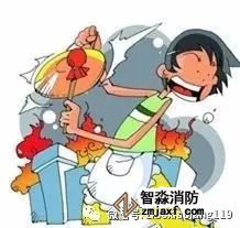 電器起火時(shí),首先要切斷電源,用干粉或氣體滅火器、濕毛毯等將火撲滅,不可用水撲救。如果電視機(jī)著火,應(yīng)從側(cè)面撲救,以防顯像管爆裂傷人。 ![]() 油鍋著火時(shí),蓋上鍋蓋滅火,不能用水撲救。 |