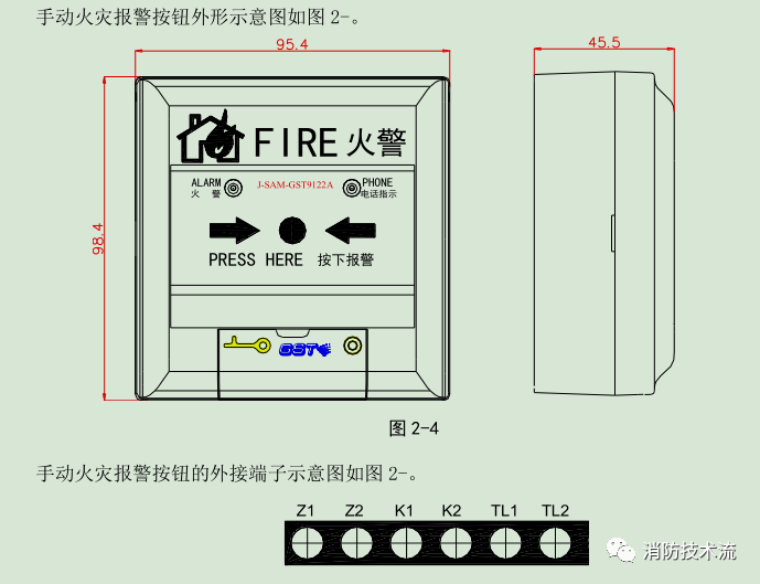 K1、K2:額定 DC30V/100mA 無源輸出端子,當(dāng)報(bào)警按鈕按下時(shí),輸出觸點(diǎn)閉合信號(hào),可直接控制外部設(shè)備。